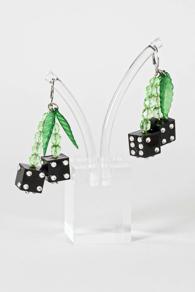 Handmade black cherry dice earrings featuring vintage beads and hand poured/studded resin dice!