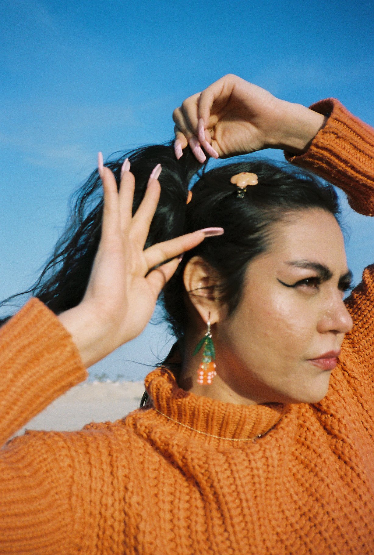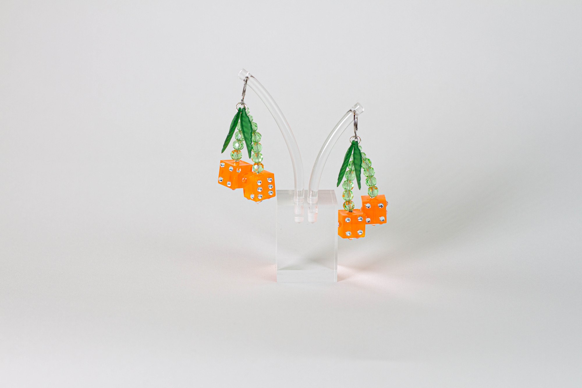 Handmade orange dice earrings featuring vintage beads and hand poured/studded resin dice! They glow under black light! These babies are made using UV resin!